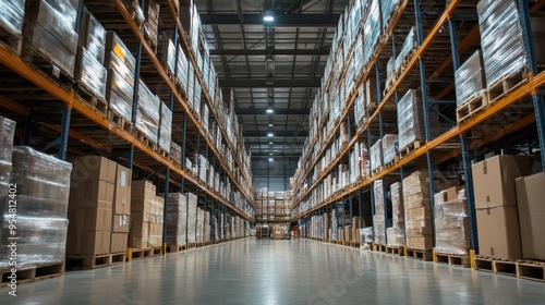 Expansive Warehouse Stacked with Goods and Supplies