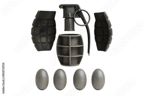 Exploded View of Inert Cluster Munition Components — Photorealistic Layout