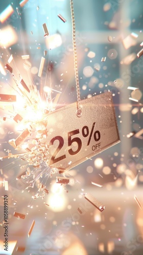 Exploding 25 Percent Off Sign, Flash Sale Promotion, Shopping Discount, Dynamic Marketing Concept
