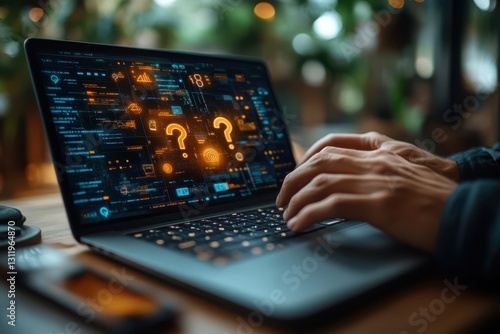 Explore technology and communication through digital devices in this image featuring a person with a laptop and cell phone, highlighting connectivity