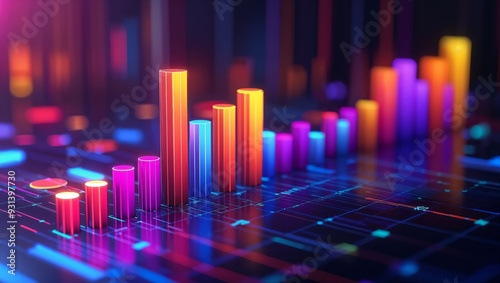 Explore the Enigmatic World of Data Through a Dazzling Display of Colors and Shapes, as Vibrant Bar Graphs Illuminate the Path to Insights in a High-Tech Environment.