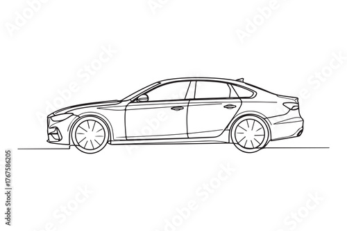 Explore this sleek and elegant side view of a car in a minimalist line drawing style. Ideal for car enthusiasts, designers, and lovers of contemporary art, this detailed illustration captures the mode