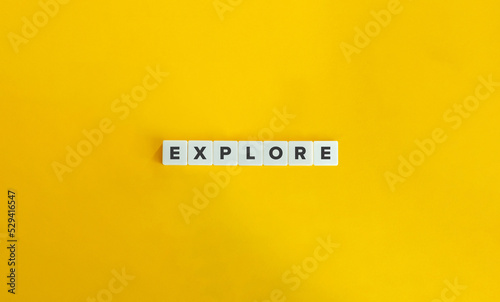 Explore Word on Block Letter Tiles on Yellow Background. Minimal Aesthetics.