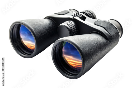 Exploring scenic views with binoculars at dusk nature outdoor adventure isolated on transparent background