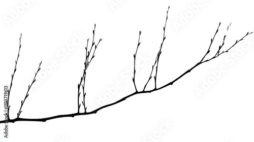 extension. New botanical buds extending from a main branch in minimalist illustration. gardening catalogs, home-decor guides, designed for gardening and botanical catalogs.