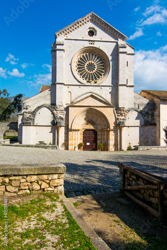 Exterior of the Abbey of Fossanova, Latina, Lazio, Italy. Monastery gothic cistercian.
