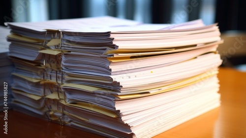 extreamely close up stacking of office working document with paper clip folder