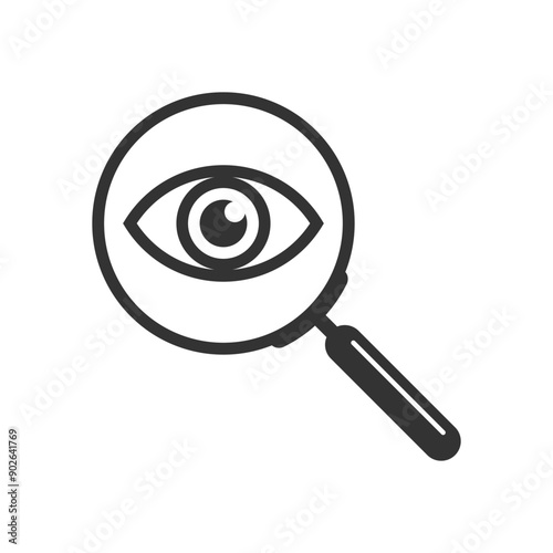 Eye and magnifier glass graphic icon. Eye in magnifier isolated sign on white background. Vector illustration