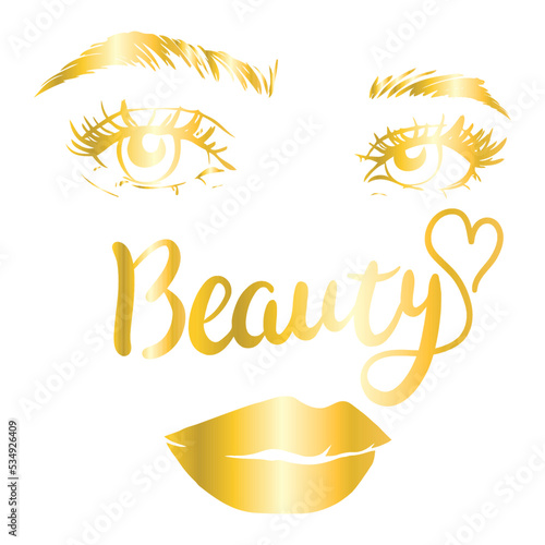 Eyelash extension logo. Makeup with gold glitter. Vector illustration