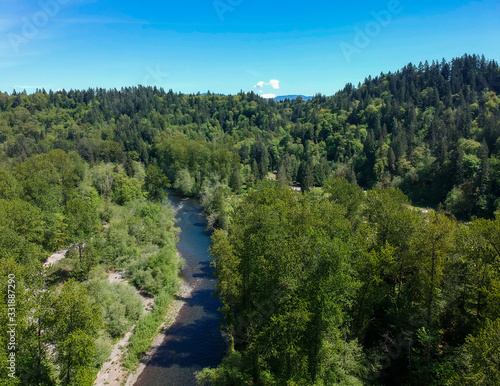 Fabulous aerial photography of Flaming Geyser State Park and the Green River on a partly cloudy summer day in Auburn Washington State