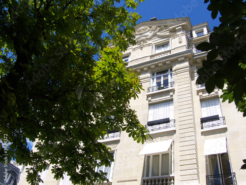 Façade de pierre avec stores baissés, Paris