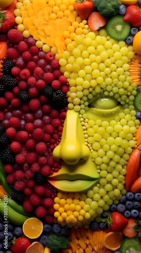 Face Sculpted from Colorful Fruits on a White Canvas