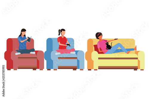 faceless people relax living room