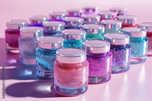 Facial hydration lock face cream skin care cream. Skincare treatment products: makeup remover lotion, skincare hygiene gel, oil, pipette with cosmetic serum and cardboard box jar pot