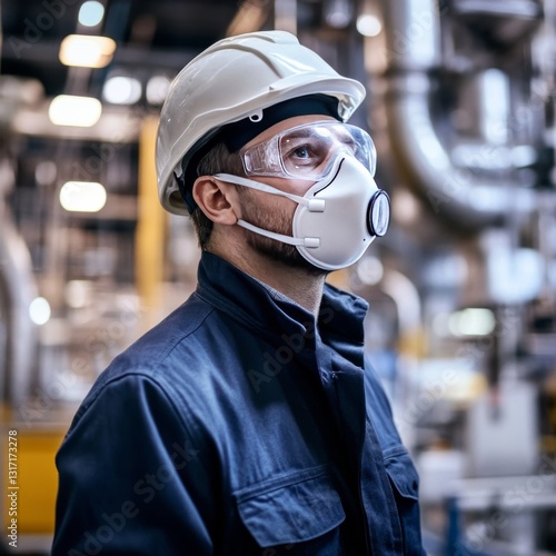 Factory worker in protective gear.