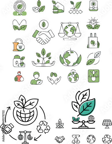 fair trade line icons, sustainability vector set, eco thin line icons, ethical trade symbols,
