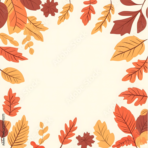 Fall border, frame with Autumn decorative leaves. Orange, brown and red foliage drawing in flat style. Fall season backdrop with forest leafage