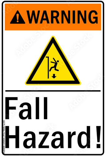 Fall hazard sign and labels