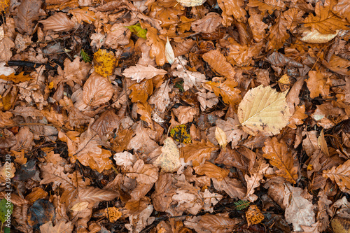 Fallen leaves lie on the ground