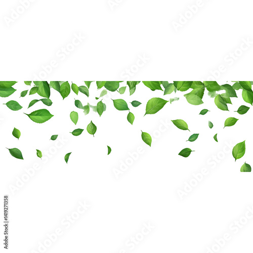 Falling green leaves on a transparent background