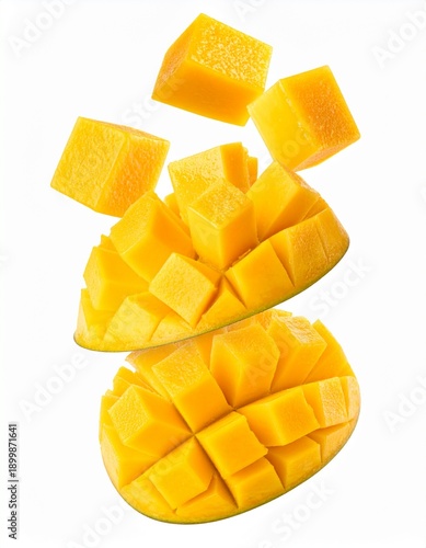 Falling mango cubes falling isolated on white transparent background Remove png