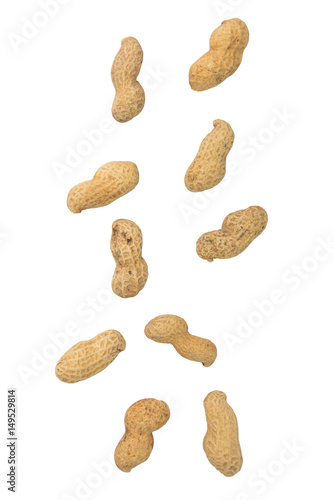 Falling peanuts on a white background.