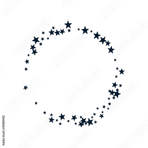 Falling stars confetti background isolated on white. Vector colorful greeting card design. Round frame. Minimalistic template