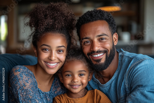 Familia Feliz no sófa da Sala
