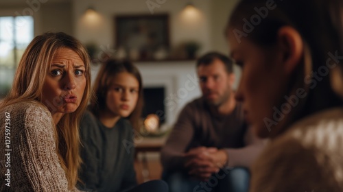 Family conflict erupting in a living room during a holiday gathering. Featuring anger and emotional distress
