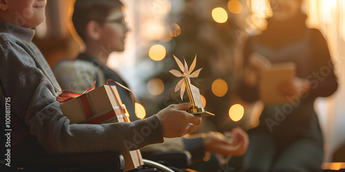 Family Gathering with Christmas Decorations and Festive Spirit, Holiday Season Family Celebration with Gifts and Christmas Tree