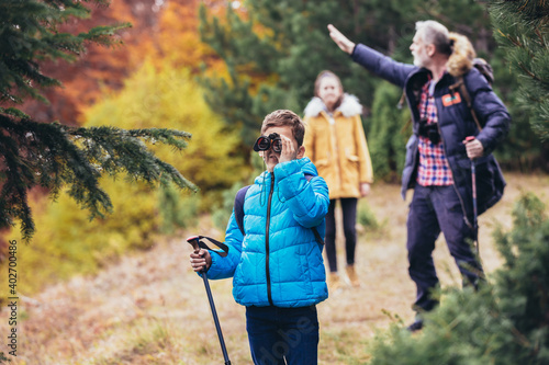 Family On Hiking Adventure Through Forest