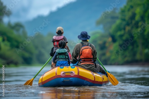 Family Rafting Adventure in Lush Green Landscape