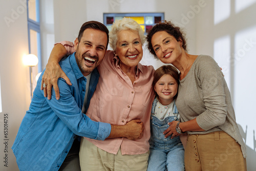 Family smiling and hugging for a photo