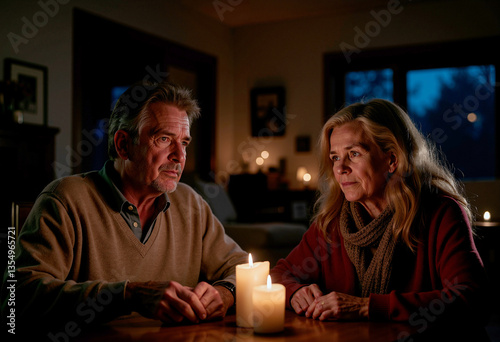 Family without electricity using candles at home