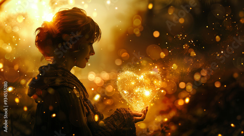 Fantasy art: A woman holds a magical, heart-shaped glowing ball of energy