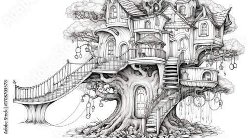 Fantasy treehouse illustration