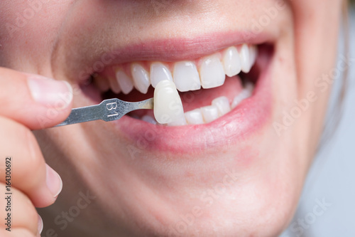 Farbabgleich mit Farbmuster an den Zähnen
