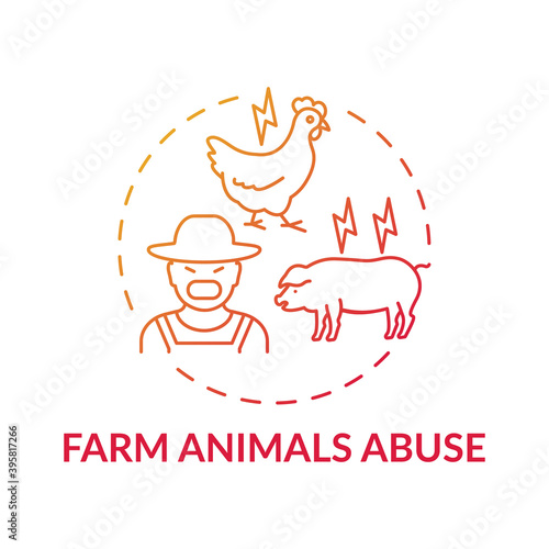 Farm animal abuse red gradient concept icon. Ranch livestock harm. Cattle violence. Unethical industry. Wildlife conservation idea thin line illustration. Vector isolated outline RGB color drawing