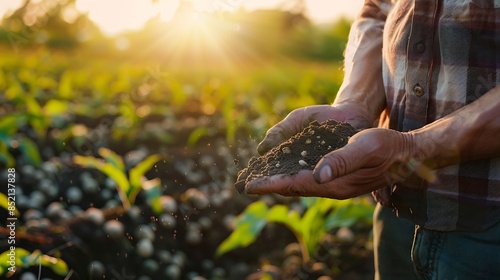 farmer holds soil field hand Agriculture Agriculture plays key role maintaining ecosystem preserving biodiversity Farmers use various farming methods such fertilization tillage plant c : Generative AI