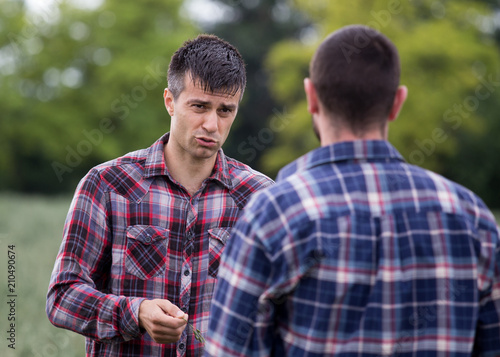 Farmers standing in oat field