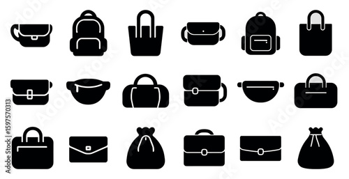 Fashion and accessories silhouette icons set – solid, filled, style symbols