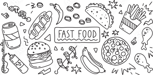 Fast Food Icons, Junk Food Art, Tasty Sketches, Food Doodles, Quick Bites, Snack Illustrations, Fast Food Art, Tasty Treats, Burger Icons, Quick Snack, Fast Food Design, Snack Icons, Flavored Doodles,