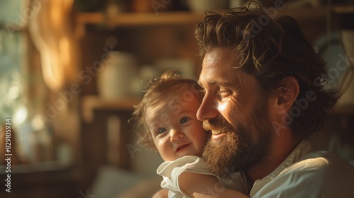 Father and child smiling in warm sunlight