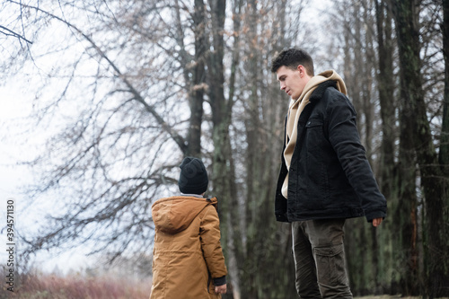 father and son are building in the park, dad tells his son what can and cannot be done, conversation with the child
