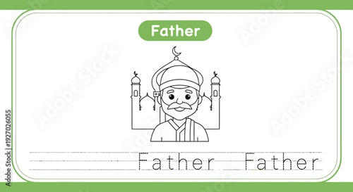 Father coloring page with mosque background