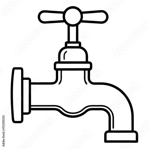faucet ,hand drawn illustration outline isolated on white background