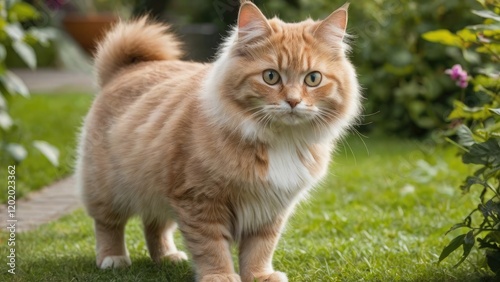 Fawn british longhair cat in the garden