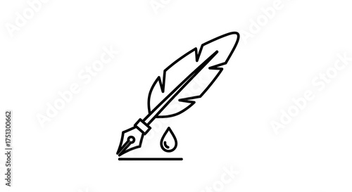 Feather Quill Pen with Ink Drop - Writing and Literature Icon.
