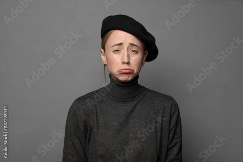 feeling sad and whiney with an unhappy look, crying with a negative and frustrated attitude
