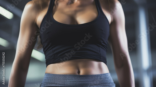 Female athlete posing showing abdominal muscles